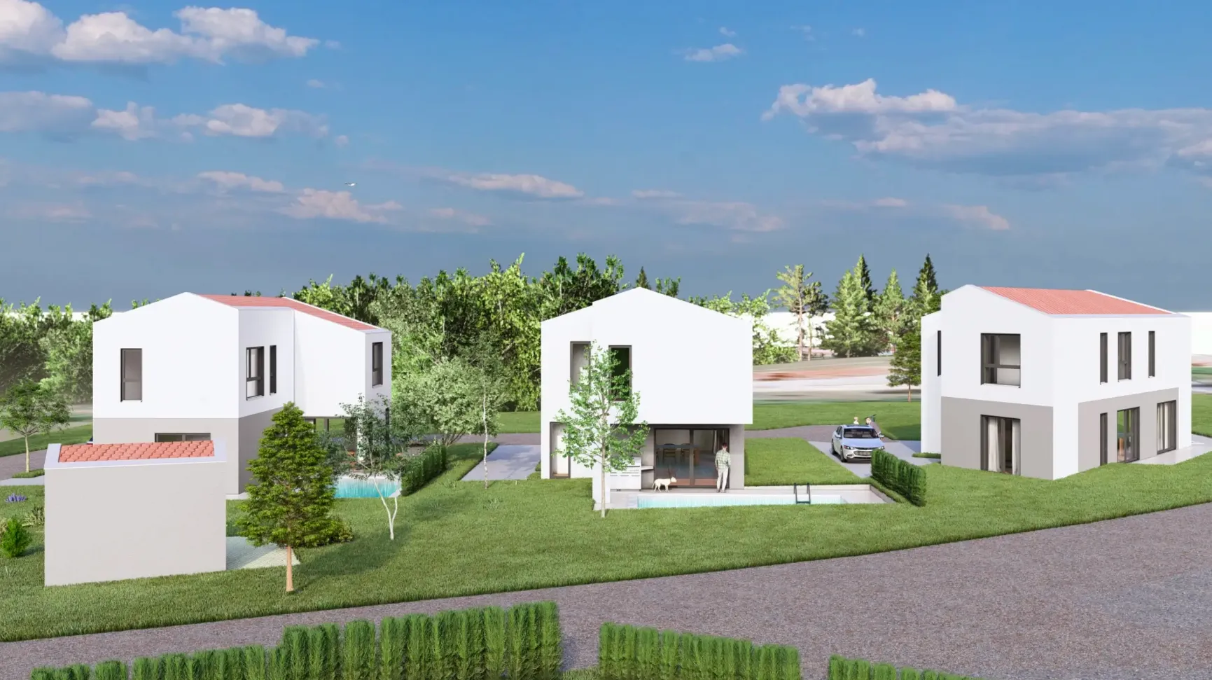 Projekt obuhvaća izgradnju obiteljske kuće s jednim stambenim prostorom u Stranićima kod Lovreča, površine oko 150 m², zajedno s pomoćnim vanjskim bazenom površine približno 30 m². Kuća je dizajnirana za udoban obiteljski život s naglaskom na funkcionalnost i energetsku učinkovitost. Bazen doprinosi estetskom i rekreacijskom aspektu projekta, prilagođenom potrebama stanara.